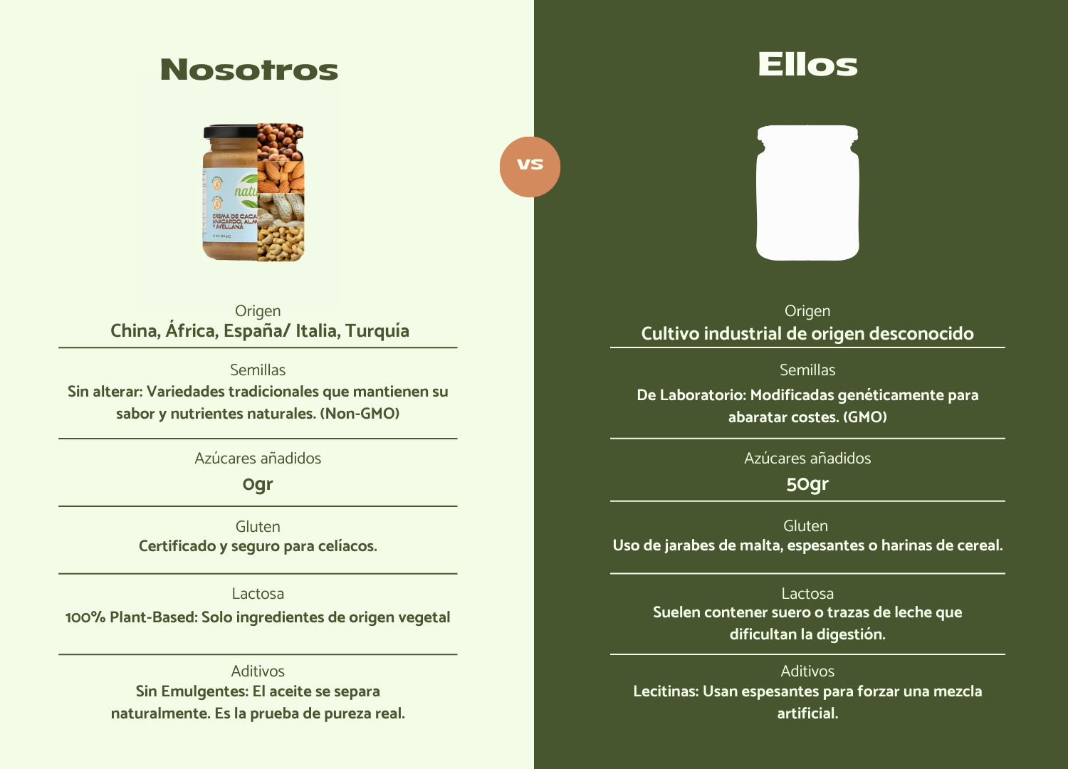 Almendra, Cacahuete, Avellana y Anacardo en un solo tarro. No hace falta elegir uno.